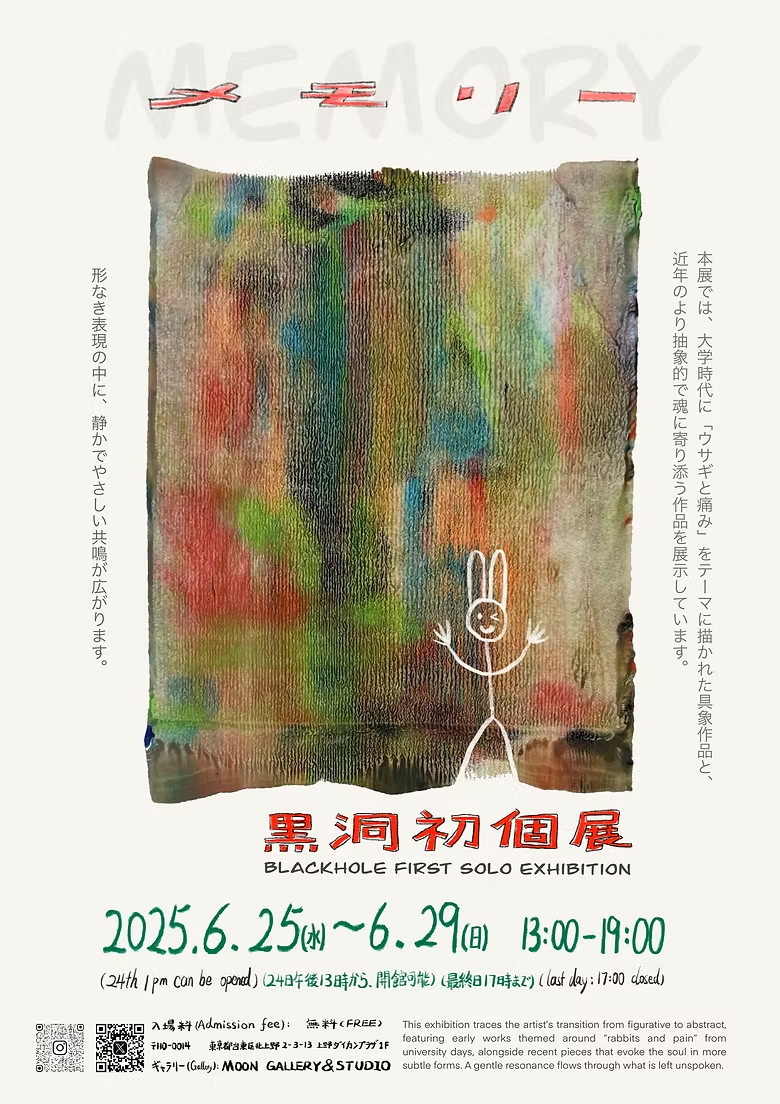 Moon Gallery & Studio is an independent art space in Tokyo, founded in 2023 by Yuetong Chen, a printmaking graduate from Musashino Art University. The gallery is committed to showcasing emerging artists from around the world and supporting experimental practices across diverse media, including painting, installation, and performance. Dedicated to cross-cultural dialogue and creative exchange, Moon Gallery & Studio provides a platform for new voices in contemporary art.