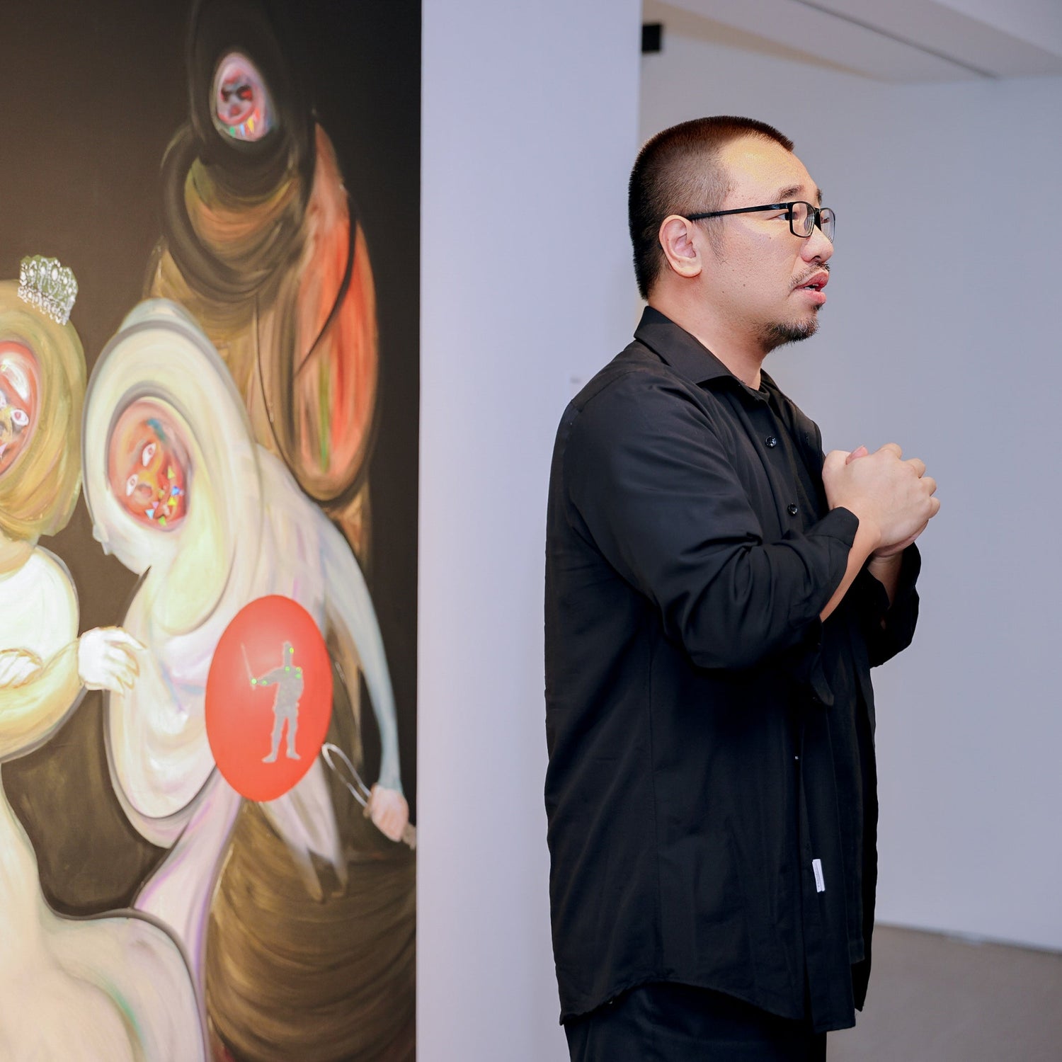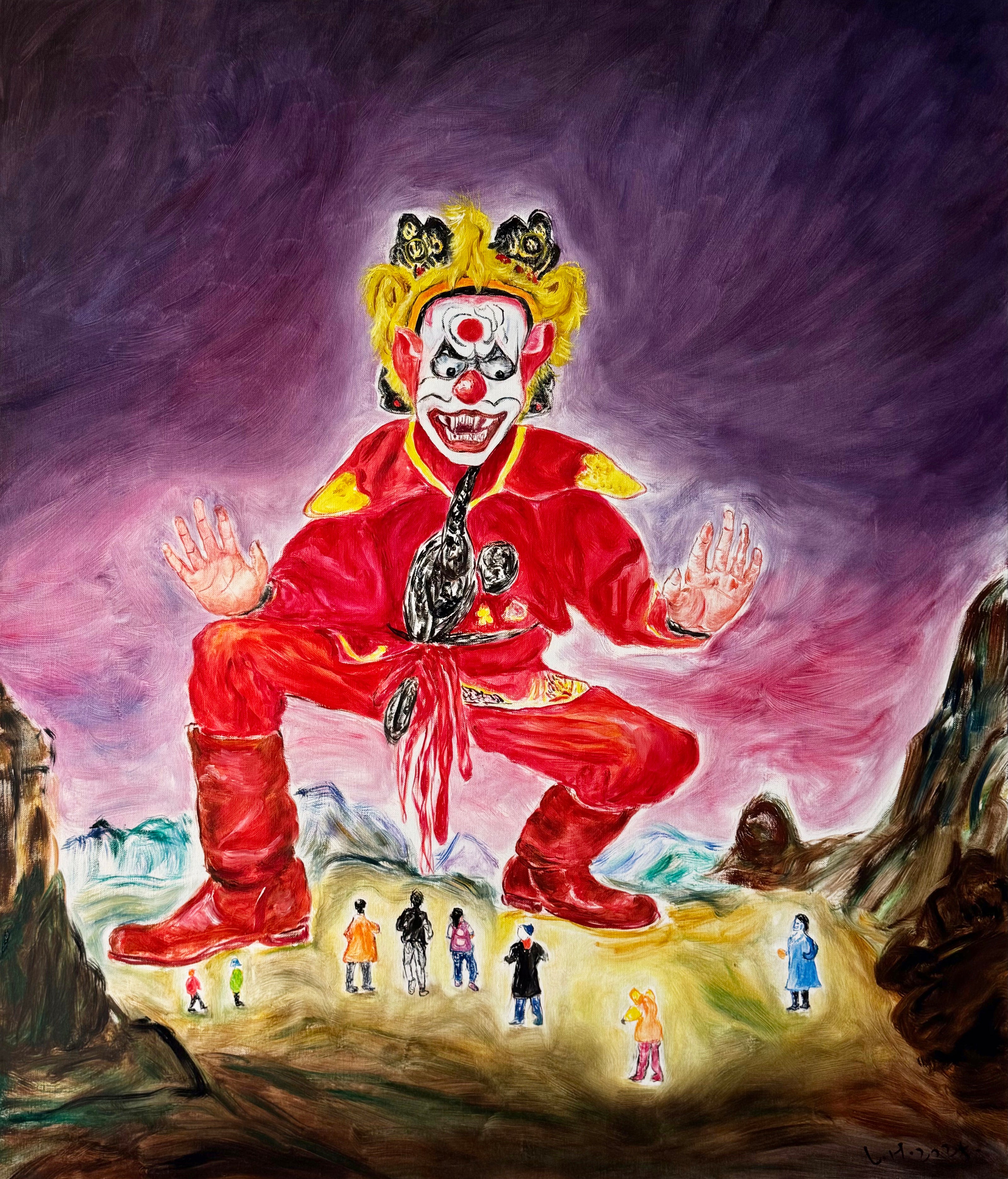 Hao Li investigates the intersection of painting and philosophical inquiry, exploring independent thought, human existence, and personal freedom in contemporary society. His work synthesizes traditional literati painting, religious imagery, and contemporary visual culture—including emojis and everyday gestures—into layered compositions that transcend temporal and spatial boundaries.
