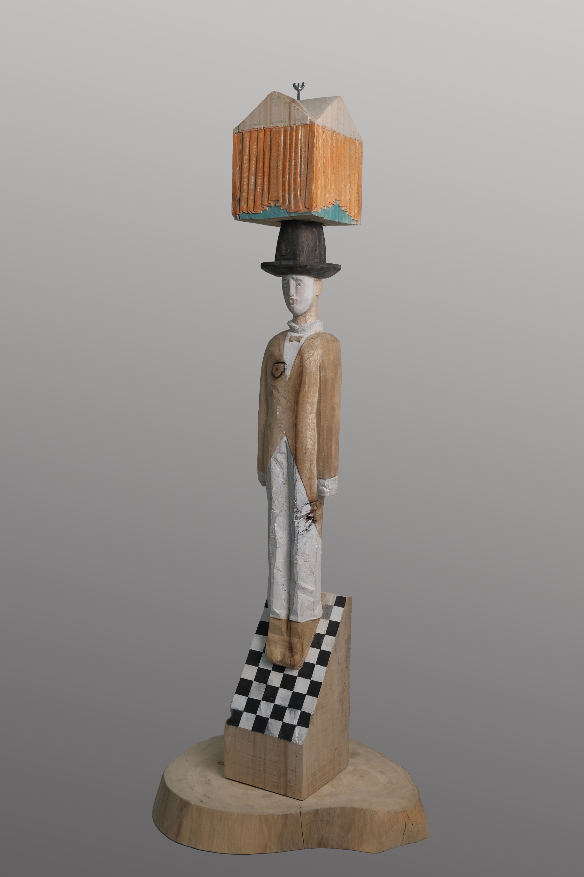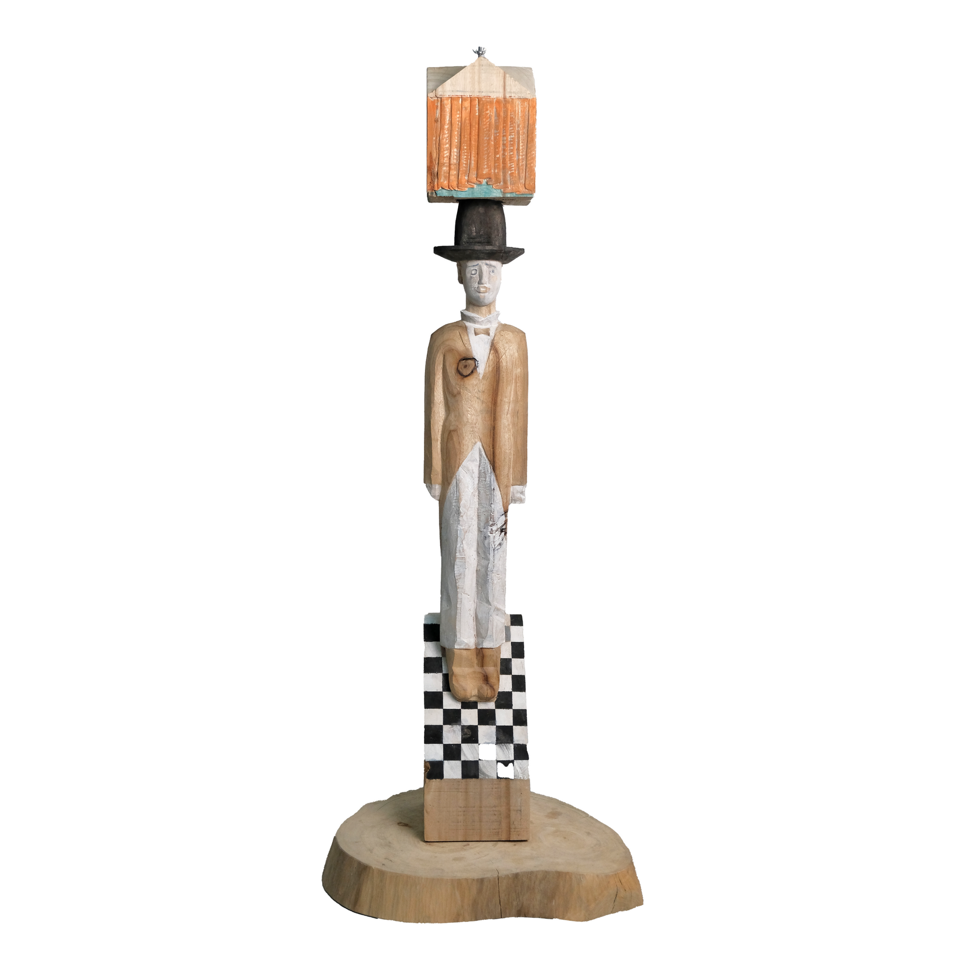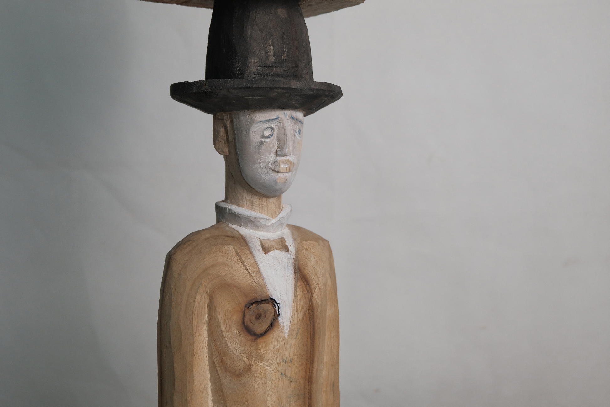 Haideng' Wangs wood sculptures capture a rustic and primitive beauty. He excels in using simple yet powerful lines and shapes to create a visual impact, retaining the natural form and texture of the wood while giving it a smooth finish. Through a combination of solidity and void, balance, and contrast in his carving, Wang profoundly expresses the essence of life and the inner world of the individual.