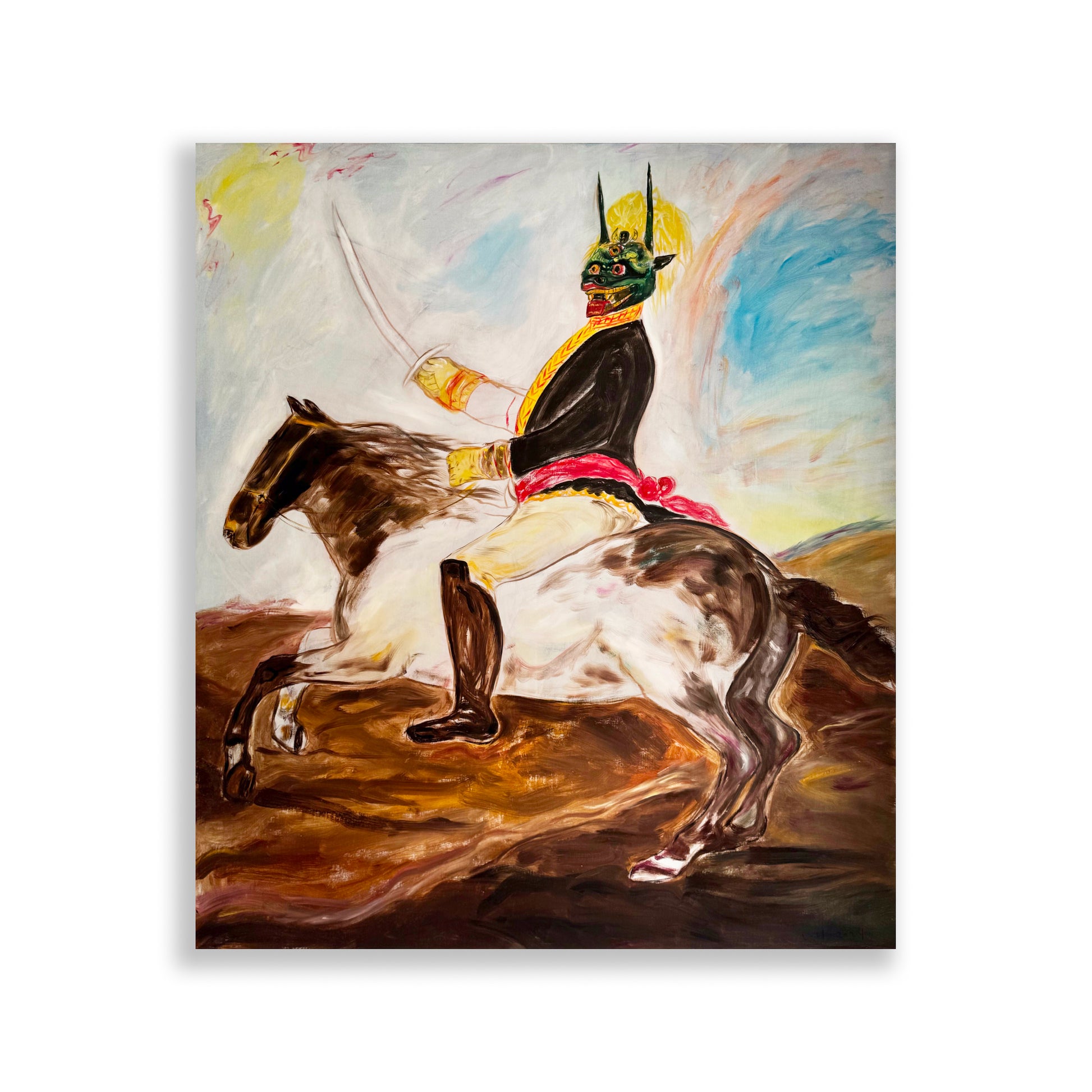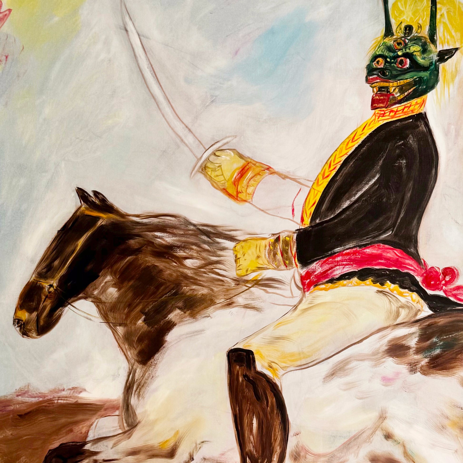 Hao Li investigates the intersection of painting and philosophical inquiry, exploring independent thought, human existence, and personal freedom in contemporary society. His work synthesizes traditional literati painting, religious imagery, and contemporary visual culture—including emojis and everyday gestures—into layered compositions that transcend temporal and spatial boundaries.