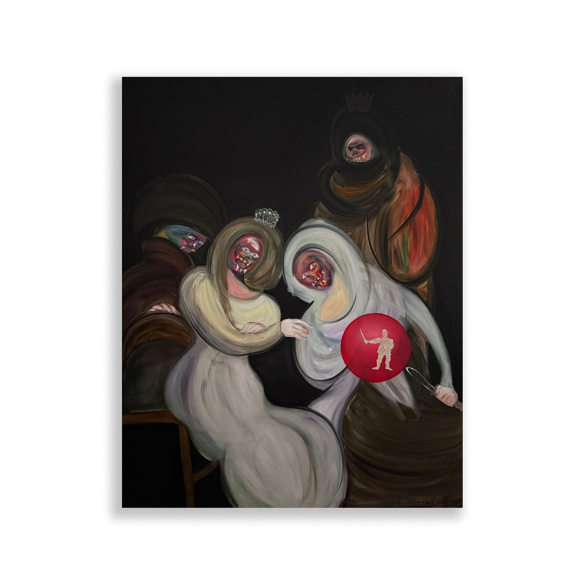 Hao Li investigates the intersection of painting and philosophical inquiry, exploring independent thought, human existence, and personal freedom in contemporary society. His work synthesizes traditional literati painting, religious imagery, and contemporary visual culture—including emojis and everyday gestures—into layered compositions that transcend temporal and spatial boundaries.