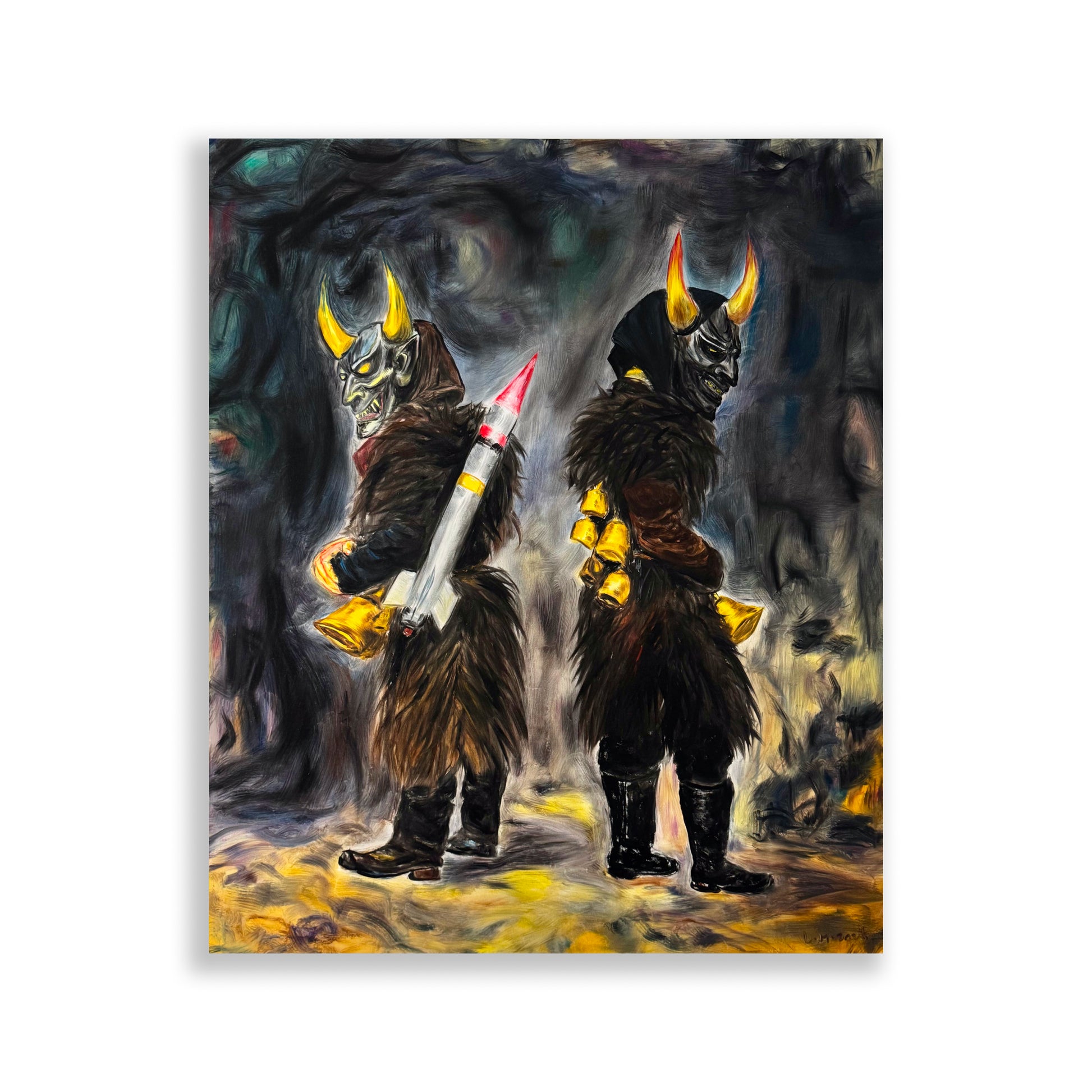 Hao Li investigates the intersection of painting and philosophical inquiry, exploring independent thought, human existence, and personal freedom in contemporary society. His work synthesizes traditional literati painting, religious imagery, and contemporary visual culture—including emojis and everyday gestures—into layered compositions that transcend temporal and spatial boundaries.