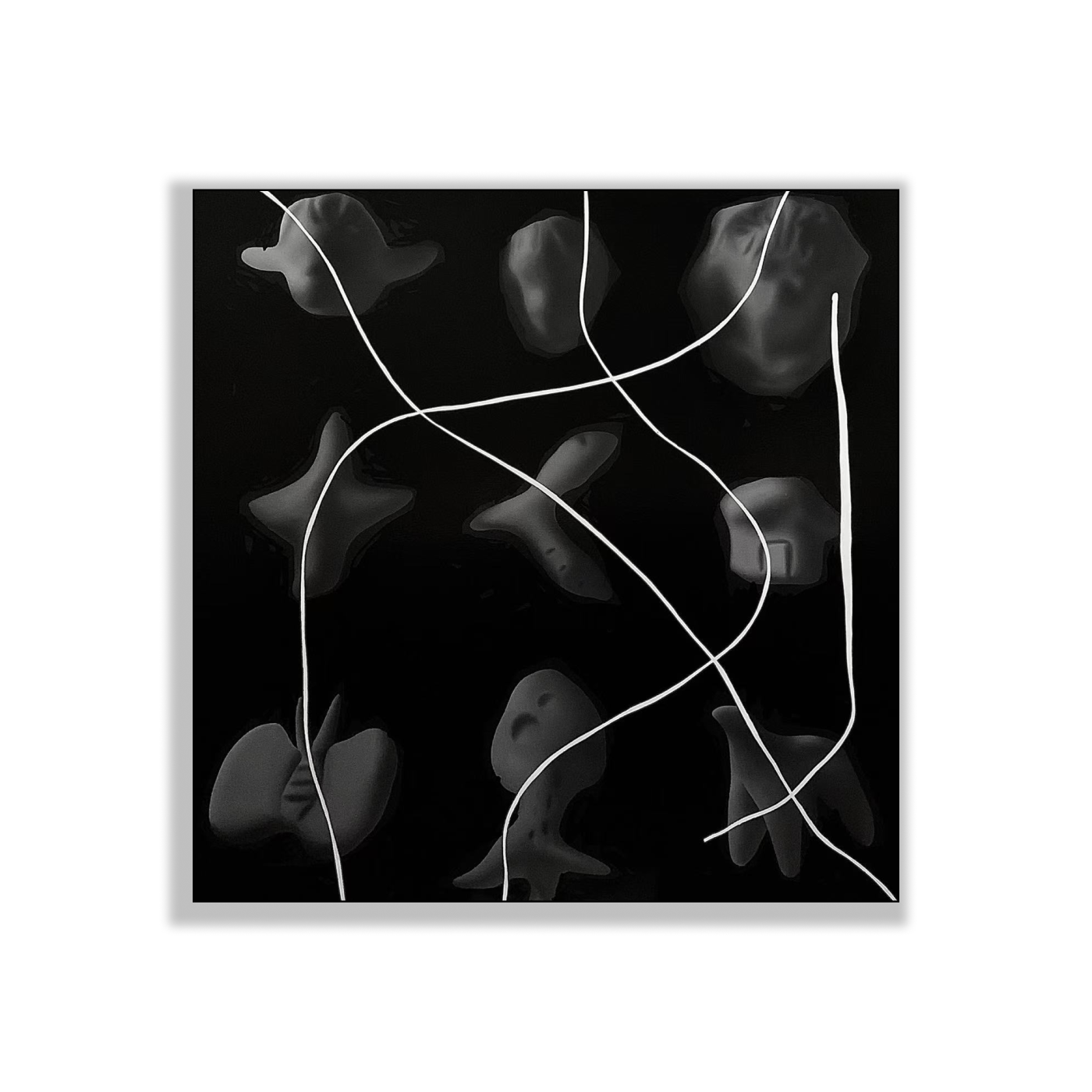 Yue Cao’s paintings evoke the austere sensibility of black-and-white film, constructing a silent space of tension and reflection. His works oscillate between conflict and equilibrium, reality and illusion, using a restrained visual language to stage an inner psychological drama. The interplay of light and shadow becomes not merely formal, but a profound inquiry into the subconscious and the depths of human nature.